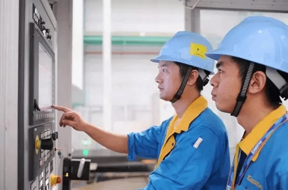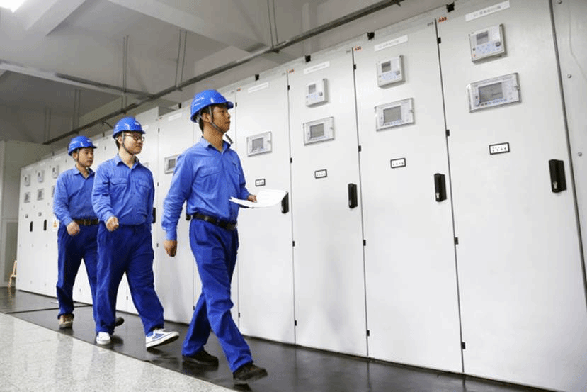 图1、图2为学生在进行设备安装调试,图3、为学生在企业进行远程实验,图4为学生在实习时进行设备运行巡查。