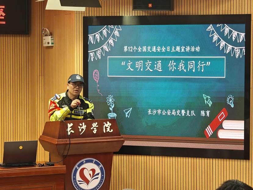 陈育首先向与会师生介绍了当前交通安全形势和常见的交通违法行为,通过生动的案例分析,深入浅出地讲解了遵守交通规则的重要性。在宣讲过程中,陈育结合自己多年的工作经验,向师生们传授了如何避免交通事故、如何应对突发情况等实用技巧。他强调,安全出行需要从自身做起,每一位交通参与者都应自觉遵守交通法规,做到文明出行、安全出行。此外,陈育还针对我院师生的实际情况,特别强调了骑行自行车、电动车等交通工具时的注意事项,以及步行、驾车时应当遵守的交通规则。他鼓励师生们将安全出行的理念内化于心、外化于行,共同营造一个安全、有序、和谐的交通环境。