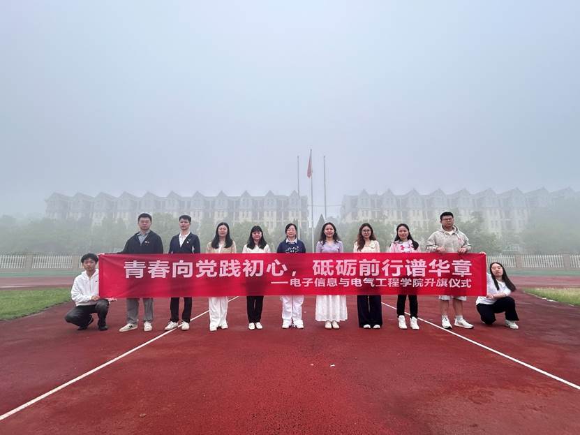 为深化爱国主义教育,弘扬劳动精神,在五一劳动节来临之际,电信学院于2025年4月28日清晨在天健体育场隆重举行升旗仪式。学院党总支书记张丹、副书记江艳携全院辅导员及全院在校学生共同参与。