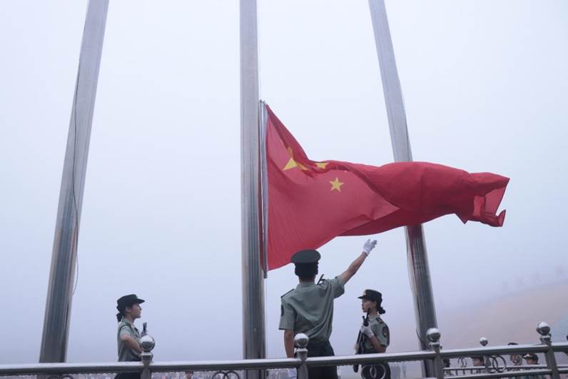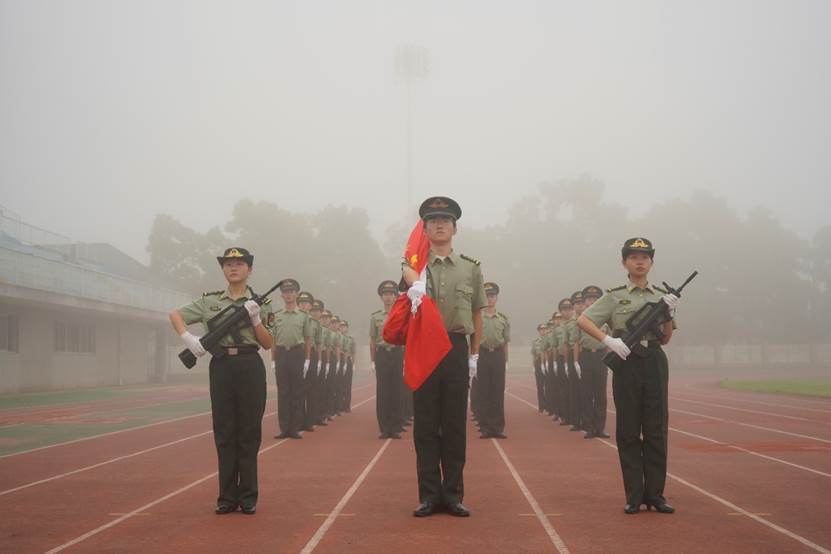 七时整,国旗护卫队踏着铿锵正步护卫五星红旗入场。在庄严的国歌声中,全体师生肃立行注目礼,五星红旗缓缓升起,激荡着现场千余师生炽热的爱国情怀。