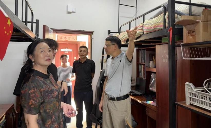 新学期伊始,为深入了解学生返校后的生活情况,排查宿舍安全隐患,8月31日下午,电信学院党总支书记张丹、院长朱培栋、副书记江艳、副院长刘辉带队深入敏学1栋学生宿舍开展走访慰问,并实地调研学院“一站式”学生社区建设情况,为同学们送上新学期的关怀与问候。