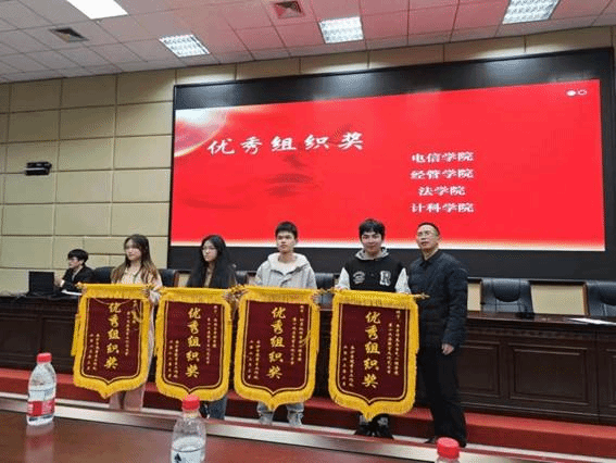 在学院师生的共同努力下,我院荣获学校第十九届寝室文化艺术节“优秀组织奖”。在本届寝室文化艺术节活动中,我院共21间宿舍获奖。我院22级辅导员、宿舍专干谢力作为“优秀指导老师”代表在本届寝室文化艺术节颁奖典礼上做了典型发言。他从宣传措施、组织参与、奖励制度等方面进行经验分享。