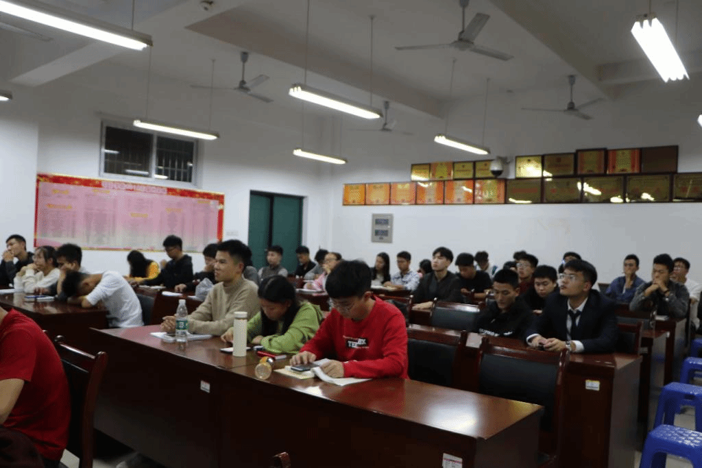 2019年11月12日晚,电信学院2018-2019学年优秀班集体评选答辩会在理工楼B202召开。电信学院学工办主任江艳、辅导员聂云志、娄宁娜、团总支副书记赵婷、学生会副主席及学习部部长出席了本次会议,并担任本次答辩会评委,全院43个班级的部分学生代表参加了会议。