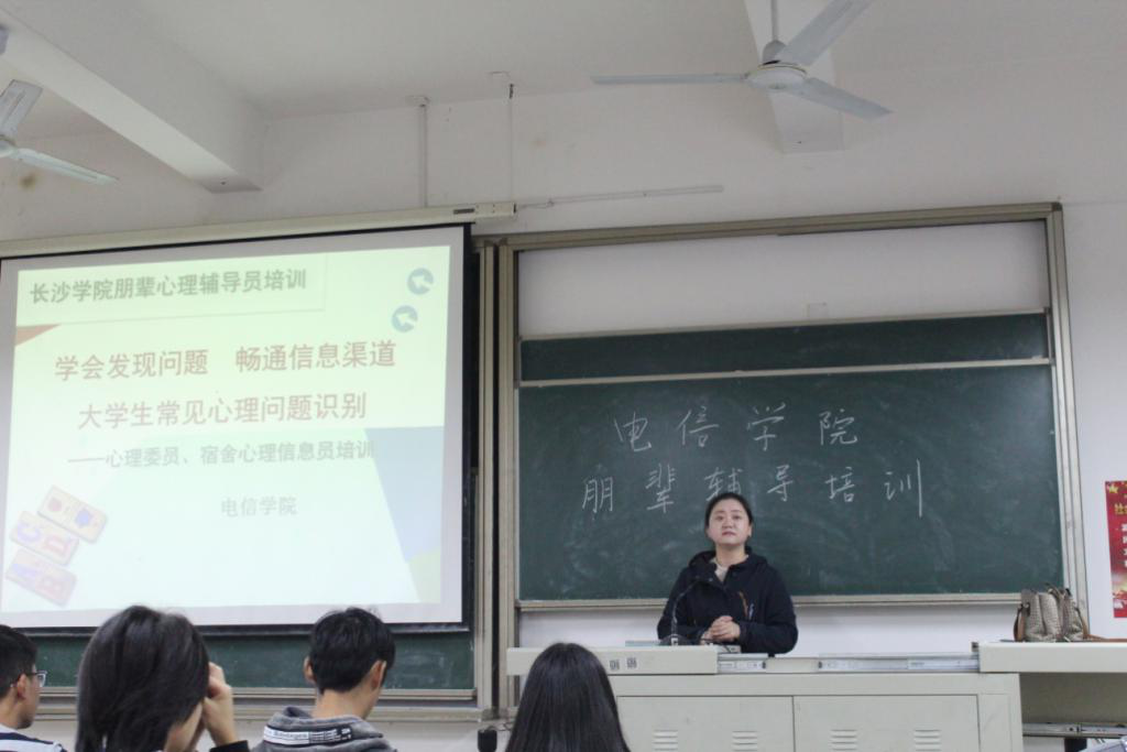 11月6日下午2点,电信学院新学期朋辈辅导专题培训在理工楼C503顺利开展,学工办江艳老师承担此次培训任务。学院全体新任心理委员、宿舍信息员以及心理部成员参加培训。