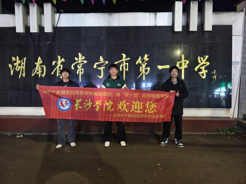 为积极响应长沙学院"优秀学子回母校"活动的号召,搭建长沙学院与高中母校间的桥梁,讲好长大故事,传播长大声音,吸引更多优秀学子报考长沙学院,2025年2月28日,长沙学院电子信息与电气工程学院24光电02班张鹏飞、黄毅、杨铮在何玉莹老师的指导下,返回常宁市第一中学开展母校回访活动。
