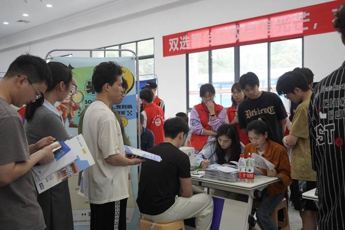 在双选会现场,学生们手持精心准备的简历,穿梭于各个企业的展位之间,积极与企业代表交流,介绍自己的专业技能和实习经验。企业代表们热情耐心地解答学生们的问题,详细介绍公司的企业文化、发展前景以及招聘岗位的具体要求。