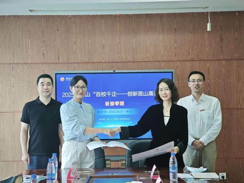 2025年10月17日上午10:00,长沙学院与昆山市校政企座谈交流会在长沙学院招就处221会议室召开。双方围绕人才培养、毕业生就业、校企合作等议题深入沟通,并完成校企合作签约。
