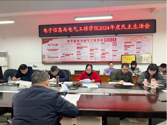 为深入学习贯彻习近平新时代中国特色社会主义思想,巩固深化党纪学习教育成果,综合发挥党的纪律教育约束、保障激励作用,进一步全面深化改革、推进中国式现代化提供坚强纪律保证,电子信息与电气工程学院党总支于2025年2月28日在理工楼B511召开2024年度民主生活会。学校副校长、党委委员何利华全程参会指导,学院领导班子全体成员以刀刃向内的勇气开展严肃政治体检,会议“辣味”十足、成效显著。