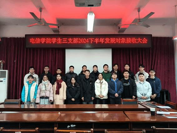 为切实做好党员发展工作,强化党员队伍建设,进一步提升党支部的凝聚力与战斗力,2024年12月30日15时30分,电信学院学生三支部在理工楼B202会议室召开了2024年下半年预备党员接收大会。此次大会由学生三支部书记谢力主持,我院学生三支部发展对象及全体党员参加。