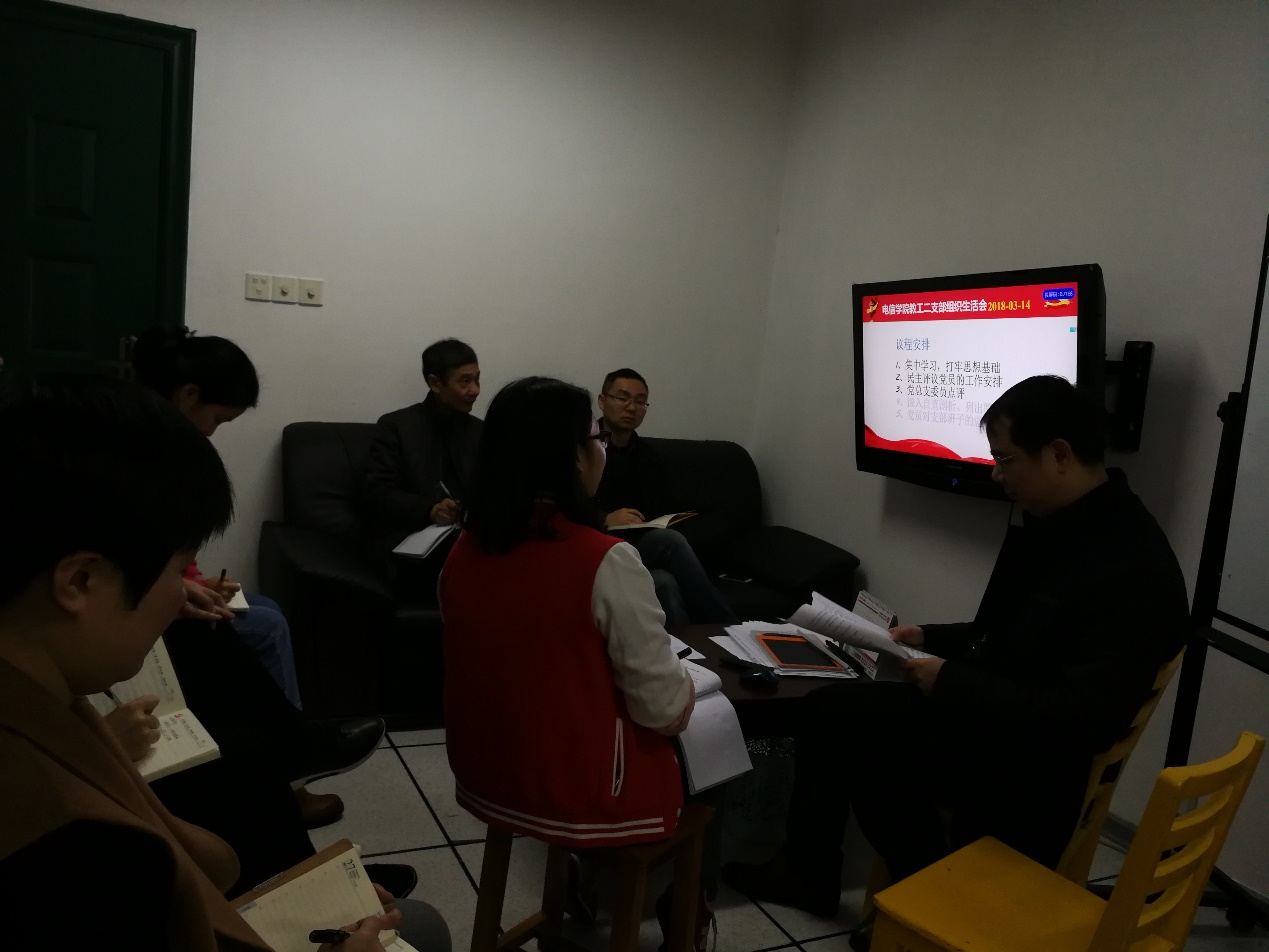 为了深入学习贯彻党的十九大精神,电信学院教工二支部于2018年3月14日上午在理工楼B110召开集中学习会,除了出国和产假的两名党员请假之外,其余九名同志全部按时出席。