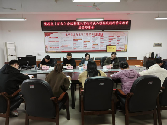 3月28日上午,电子信息与电气工程学院在理工楼B511召开党总支扩大会议暨深入贯彻中央八项规定精神学习教育启动部署会,全面动员部署学习教育工作。学院领导班子成员、支部书记参加会议。会议由学院党总支书记张丹主持。