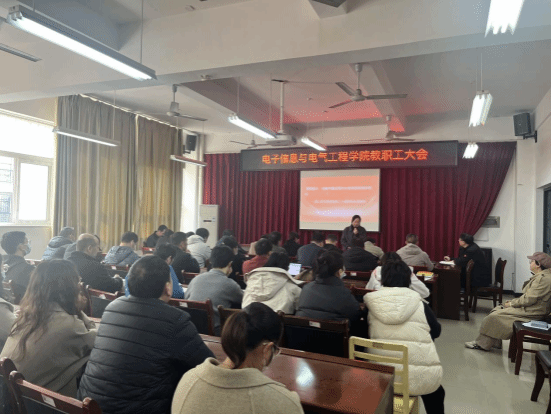 2025年12月9日,电子信息与电气工程学院在理工楼B202召开全院教职工大会,专题学习党的二十届四中全会精神。