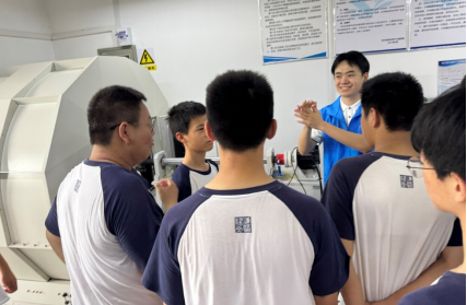 图2 志愿者向参与活动的同学介绍实验室科研实验设备