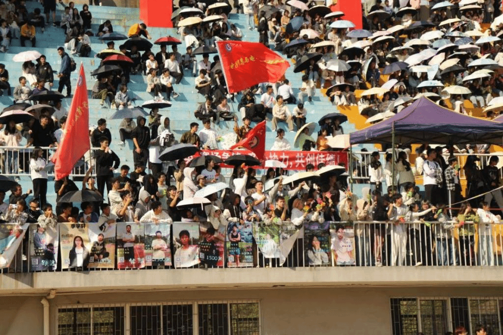 观众席上,同学们热情高涨,为运动员们加油助威。呐喊声、欢呼声此起彼伏,响彻整个赛场。他们用自己的方式为运动员们注入了强大的动力,让运动员们感受到了集体的温暖与力量。