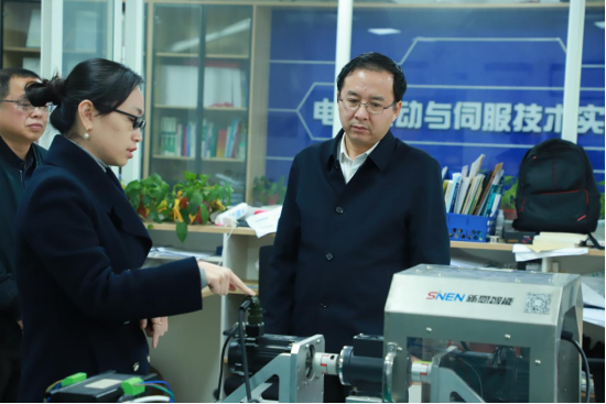 会后,陈赤平校长在学院班子成员的陪同下考察了北斗导航应用技术研发实验室和电力传动与伺服技术实验室。