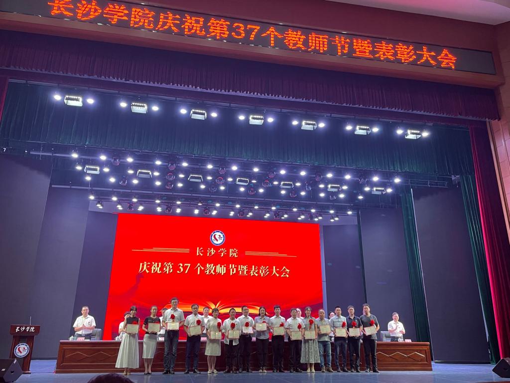 为庆祝第37个教师节,学校于99日下午在大礼堂隆重举行了教师节表彰大会,对教学、科研一线表现突出的教师进行了表彰。我院湖南省科学技术进步奖一等奖获得者张文娟副教授、重大成果转化团队吴鹏老师湖南省引进100个科技创新人才人选杨波教授、长沙学院师德标兵获得者冯璐副教授,我最喜爱的教师刘亮、聂云志上台接受了颁奖。