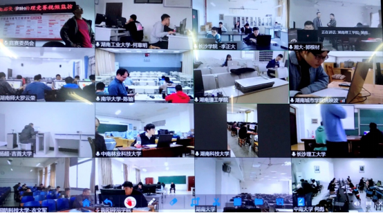 为了尽量减少人员流动同时确保考试公平公正,所有考生在本校机房使用“信息化平台”在线竞赛,各校教师交叉监考,组委会集中视频监控。理论考试评卷通过抽签的形式随机抽取了21位老师组成的评阅专家组,采用流水阅卷形式评阅试卷。实验操作竞赛,考生登录“虚拟物理仿真实验平台”并独立完成实验。10月25日下午,由中南大学杨兵初教授、国防科技大学黄明球教授、湖南大学王玲玲教授、长沙理工大学唐立军教授、湘潭大学唐翌教授组成专家评审组评议了竞赛结果。竞赛专家评审会在理工楼B511会议室举行,省教育厅高教处副处长曾思亮参加了评审会议