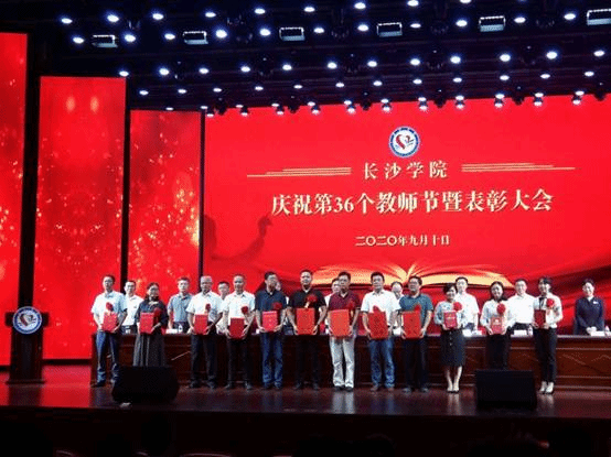 电信学院三名教师先后登上主席台接受表彰,他们是“全国模范教师”称号获得者苏钢、湖南省高校辅导员年度人物提名奖获得者江艳、2019年度长沙学院师德标兵孙利平,学校领导为他们分别颁发荣誉证书、合影留念。