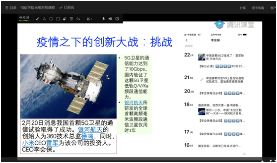 紧接着朱院长从国家抗疫的角度,分析我国在疫情面前所展现出的强大力量,从我国集中力量办大事,一方有难八方支援,19个省对口湖北16个市进行“一省包一市”援助的生动案例中进一步阐述了我国的制度优势。他结合专业也谈到:“疫情之下我国的科技依然在发展,2020年2月20日我国首颗5G通信卫星试验取得成功。”这无一不体现了在中国共产党的坚强领导下,国家强大的发展势头。