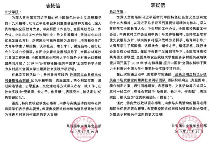 除获团中央荣誉外,我院在湘西国网龙山县分公司设立社会实践实习基地,黄佳佳指导老师参评湖南省“优秀指导教师”,胥鹏同学参评湖南省“优秀个人”,活动多次被新湖南、红网龙山、湘西州团结报等媒体报道,具有良好的社会影响和成效。