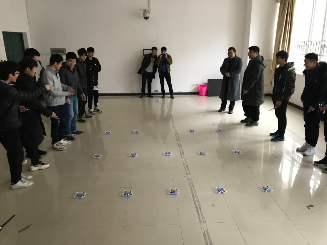 在电信学院众多创新创业导师经过半年的筹备下,“放飞2019——长沙学院—粤嵌无人机冬令营”顺利开营。此次冬令营活动电信学院学生报名非常踊跃,为保证训练效果,最终决定分批分期开展。第一批冬令营从2019年1月5日至1月9日,为期5天,参与对象为30名电信学院2016级学生,涵盖了本学院四个专业。训练营请到合作企业工程师现场指导。从四旋翼无人机的机械原理、PID算法到飞控调试都做了详细的讲解和实际操作。1月9日上午在理工楼B102房间进行了此次冬令营的成果展示,营内15架无人机完成了精彩的单机动作展示和难度非常大的协同动作展示。
