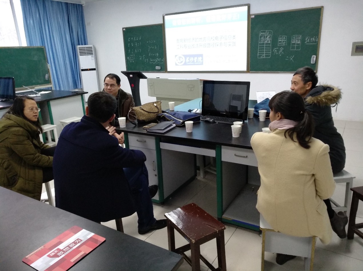 陈丹副教授表示,西安理工大学柯熙政教授在武汉召开的“新工科暨卓工程教育教学改革论坛”上,对苏钢教授的专题报告非常感兴趣,特意安排多名专业教师专程来长沙学院考察和学习。吴鹏飞副教授感谢我校的热情接待,特别在实地考察之后对电信学院的实验实训基地有了直观的感受,也对电信学院近年在专业建设上取得的丰硕成果表示热烈祝贺。同行教师对我校的应用型转型理念、实践教学和创新创业教育等方面有了更深入的了解,表示收获很大。