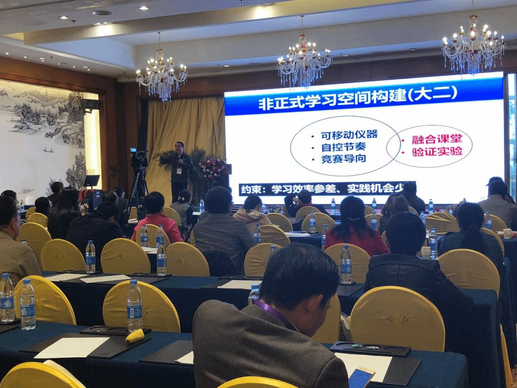 苏钢老师的专题报告主题是“电子信息大类专业基础课程的非正式学习空间构建与探索”。报告内容面向地方高校新工科建设,概述以产教协同教学为导向、以项目(课题或赛题)为基础的学习模式,并以通信工程专业综合改革为例,详细介绍了电信学院在传统教室(实验室)以外的场所,利用新型信息技术和低成本便携式工程仪器构建真实工程情境学习环境,让自控节奏式的工程学习成为可能,学习者还可以借助各种非正式环境里的行为互动来激发创新,促进“课-赛-创”深度融合。一流的应用型本科工程能力培养理念,我校通信工程本科生部分课程设计作品、学科竞赛作品,引发了与会代表极大的兴趣。中国计量大学、包头师范学院、海南大学等高校教师现场索取报告ppt和联系方式,拟在近期派遣多名教师来长沙学院考察、学习。两家参会企业负责人当场提出希望承担“可移动数电实验台”的生产和商业推广,该作品在2018年湖南省大学生物联网应用创新设计大赛获得创意类二等奖。
