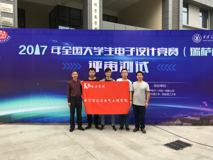 我校队伍取得这样的好成绩离不开漫长的培训和不懈的努力。在长沙学院领导的关心和支持下,电子信息与电气工程学院在4月初就针对电子竞赛做了前期准备。在整个集训和竞赛期间,电信学院在信息收集、学生组织、竞赛策略、指导教师安排、场地经费保障等方面做了大量工作。此外,我校特聘请国防科技大学高吉祥教授为我校电子竞赛做全程指导和培训,并于2017年4月12日举办了2017年度长沙学院大学生电子设计竞赛,参赛学生共42人,组成了14支参赛队,决出了7支优秀参赛队伍。从4月中旬开始,参赛队员就以饱满的热情投入竞赛,以国赛的标准设计和调试自己的作品。致远楼实验室成为参赛队员们的日常“赛场”,夜以继日只为在竞赛中一展风采。8月9日上午8:00竞赛正式开始,19支参赛队伍以高昂的斗志投入竞赛。在封闭竞赛的4天3晚,无论是身体上还是精神上,对全体参赛队员都是不小的考验。为了按时完成作品研制和报告撰写,实验场地犹如战场,为了跑在前面,参赛队员争分夺秒与时间赛跑。湖南赛区集中测评期间,我校的19支参赛队经过严格的初赛作品测试和综合测评,其中2支队伍获湖南省一等奖,并有1支队伍入围全国总决赛。8月31日在西安交通大学的全国总决赛现场,我校入围的1支参赛队伍从参加全国复测的345支参赛队中脱颖而出,获得了国家一等奖,实现了长沙学院国奖“零”的突破。