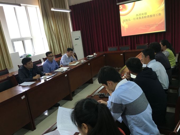 5月23日下午,副院长周明侠,学工处处长薛平平、副处长黎文普,团委副书记张镇一行到电子信息与电气工程系调研学生工作情况,听取电信系在学生思想政治教育工作、学风建设以及辅导员队伍建设等方面工作情况汇报,并就相关问题提出意见和建议。系党总支书记石学兰、党总支副书记张海涛及全体辅导员参加了调研座谈。