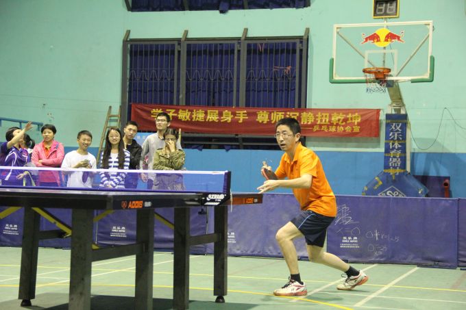 决赛,我系和老对手土建系相遇,比赛采取7局4胜制。第一局张海涛副书记来了个开门红,拿下一分。前四局我系以3:1大比分领先,就当大家都以为局势已定时,赛场风云突变,土建连扳两局,将比赛拖入令人窒息的决胜局。关键时刻大一新生杨智健初生牛犊不怕虎,顶住压力,发挥敢打敢拼精神,在第一局落后的情况下,连续得分,拿下比赛。最终,我系以4:3的大比分力克土建系,夺得冠军。