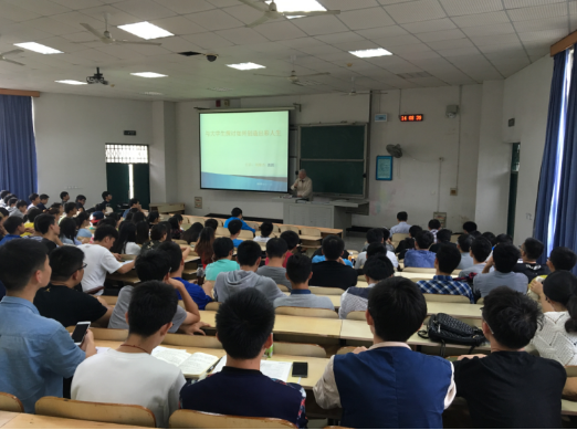 11月6日下午两点,湖南大学退休教授何维杰在涵虚楼C多4教室作了题为《与大学生探讨如何创造出彩人生》的精彩讲座。电信系党总支副书记张海涛,辅导员黎卓与电信系14、15级150余名学子聆听讲座。