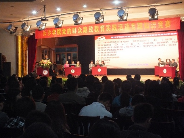 为了促进党员对党的群众路线理论知识的学习,长沙学院举行了“党的群众路线教育实践活动专题知识竞赛”。竞赛分为学生组与教师组两个部分,并于4月23和24日晚上7点相继在多功能厅进行。