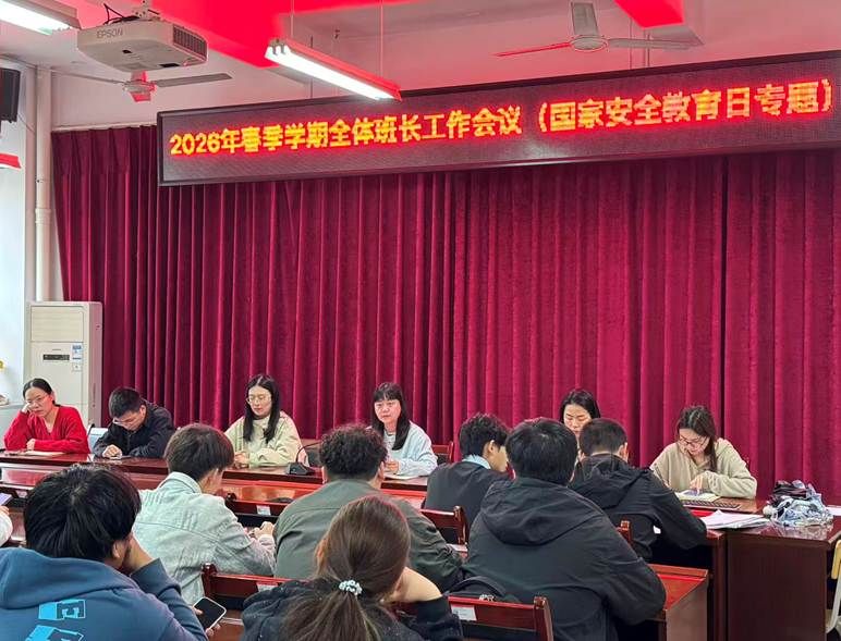 四月春深,恰逢全民国家安全教育日。4月15日,我院在理工楼B202召开2026年春季学期全体班长工作会议。学院党总支副书记江艳、全体辅导员及全体班长齐聚一堂,共话安全底线与学风建设。
